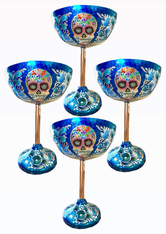 Mexican Handmade Copper Jigger - Hand Painted Blue Sugar Skull