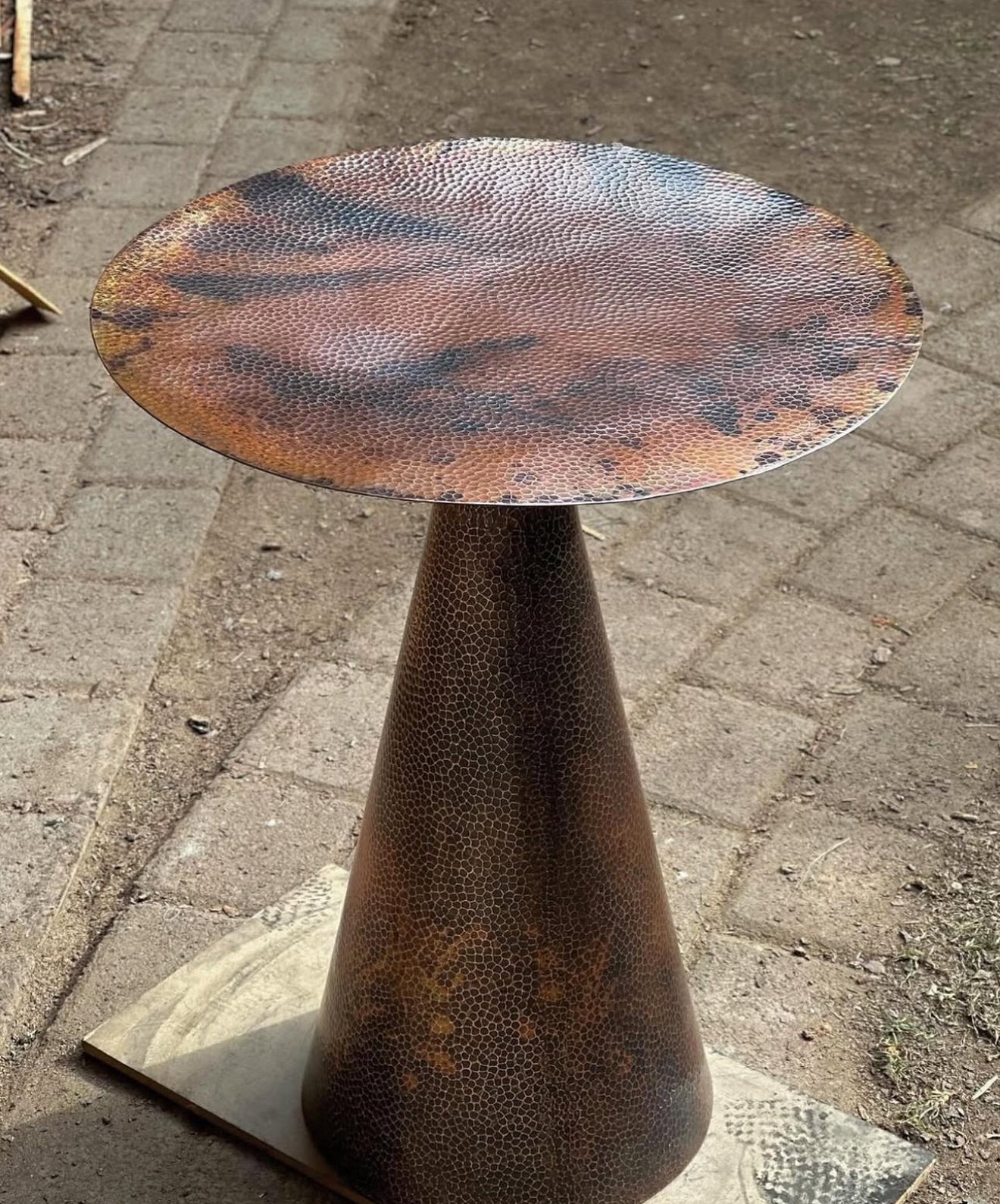 Elevate your living space with this stunning hand-hammered copper side table, a masterpiece of Mexican artisan craftsmanship. This elegant and extremely unique accent piece blends timeless tradition with modern sophistication, making it the perfect addition to any home decor style—be it rustic, bohemian, or contemporary.