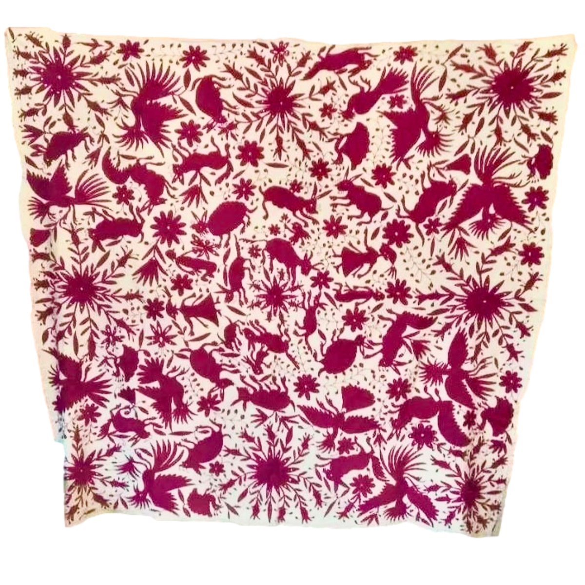 Hand Embroidered Otomi Tenango de Doria Tablecloth- Rojo