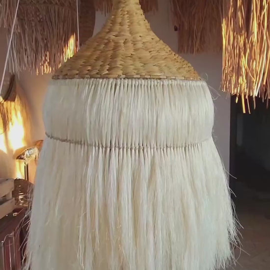 Our Maare "WOW or AMAZING" 100% Handmade-Intricate pendant in FINE "tule" sea weed and henequen filaments cascading down for an ELEGANT and STATEMENT Look!