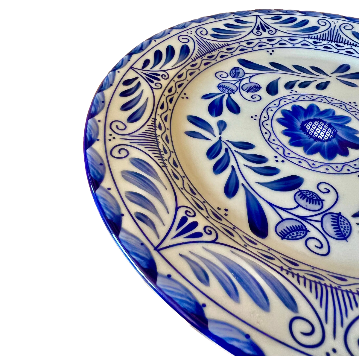 Cobalt blue color under a design converges with the best of our roots in this beautiful porcelain collection.